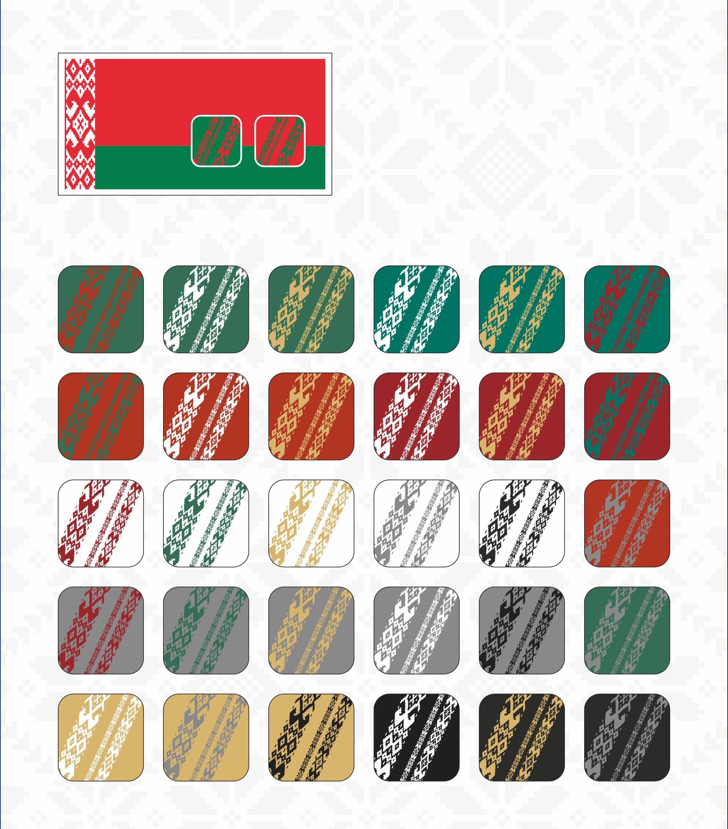 Базовая цветовая палитра представляет собой различные комбинации цветов флага Республики Беларусь.
